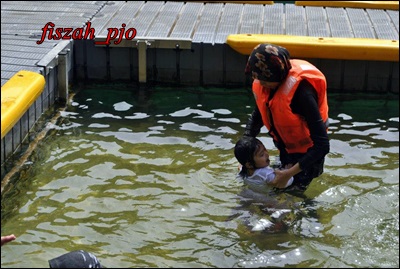 pada mulanya ingat atirah nk sambung tidor. kasi dia tidor ngn atok je, tp sampai je kt tasik dayang bunting tu mata dia segar, macam tau je time untuk mandi. ape lagi. kemain sakan dia mandi. sampai ngamuk tak nak naik..